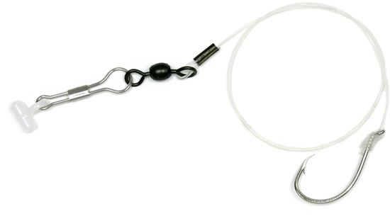 This style Drum Rig is snelled with 130 lb. test mono to a #92553 style hook. The rig has a Sea StrikerĀ® nylon sinker slide with a size 14 Luxon connecting link. The 14" long rig is available with a 5/0 or 8/0 hook. A Hatteras favorite. Available 12 per ring or individually packaged.