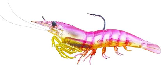 The LIVETARGET Shrimp comes in 3" and 4" versions. The new series is a handsome complement to the full lineup of inshore and near shore saltwater hard-bait lures already available by LIVETARGET. The bait has precise balance and a slow natural fall due to the strategic placement of the internal weight. The LIVETARGET Shrimp hosts life-like legs that produce a natural swimming movement to further emulate a natural shrimp. Proprietary shrimp scent is infused into the plastic during the manufacturing process to add even more familiarity to a predator's sense of smell and taste. The lures also have a special rattle chamber built in to deliver the "ticking" sounds associated with a shrimp's movement. Premium saltwater hooks are pre-rigged in the LIVETARGET Shrimp as appropriate to each model's size and custom weight system.